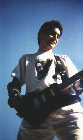 With my guitar (rock) and rollerblades (roll) on stone (rock).
